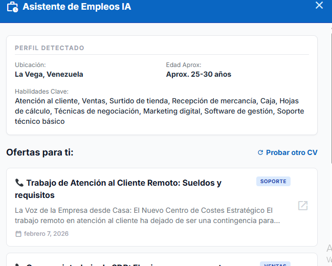 A diferencia de los plugins tradicionales que buscan coincidencias exactas de palabras clave, este sistema utiliza la potencia de DeepSeek AI para analizar documentos reales (PDF y Word). El sistema actúa como un reclutador humano: lee el CV del usuario, interpreta su perfil (Edad, Ubicación Real, Seniority) y muestra únicamente las ofertas de tu base de datos que encajan perfectamente.